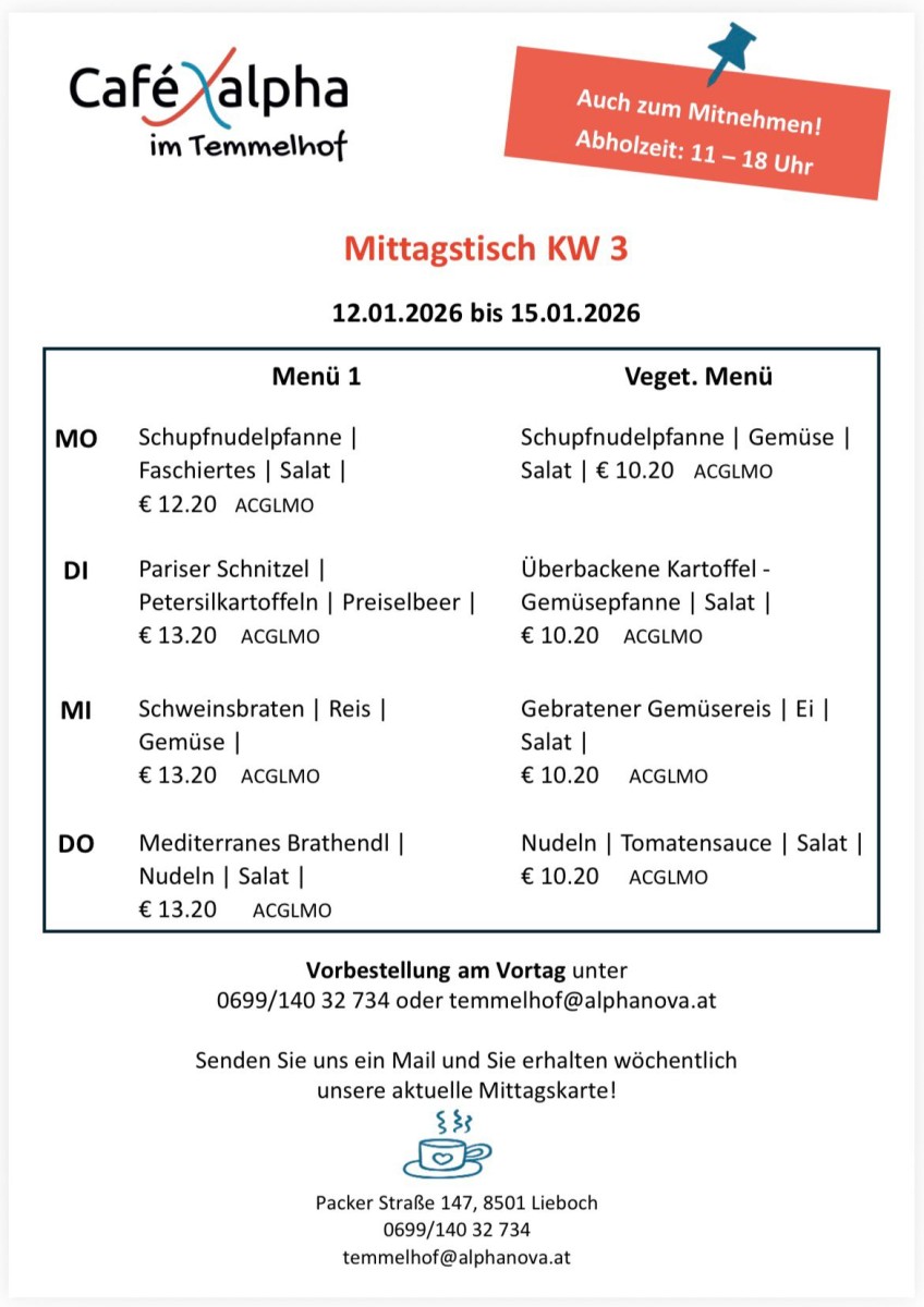 Montag bis Donnerstag 08:00-15:00 Uhr